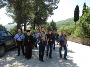 По доласку на Свету Гору, група од петнаест поклоника је посјетила Скит светог Андреја, у коме им је указано гостопримство са ноћењем, а потом су обишли манастир Кутлумуш, испосницу Светог Саве, те хиландарску келију Патерица, у којима су се поклонили тамошњим светињама. По повратку из Кареје обишли су манастир Светог Пантелејмона, а потом су посјетили свету српску царску лавру манастир Хиландар, у коме им је указано гостопримство са ноћењем, те манастир Есфигмен, а у повратку са Свете Горе и хиландарски метох Каково.