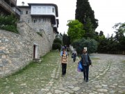 Женски дио групе је имао велику радост и благослов Божији да, приликом пловидбе дуж западне обале Свете Горе, цјелива мошти светих, које су им монаси светогорског манастира Ксенофонт донијели на брод. Након овога, имали су прилику да посјете манастире светог Арсенија Кападокијског и светог Јована Крститеља у близини Ормилије, као и сам манастир Благовјештења у Ормилији, а потом и манастир светог Козме Етолског у Арнеји и манастир свете Лидије у Аспровалти.